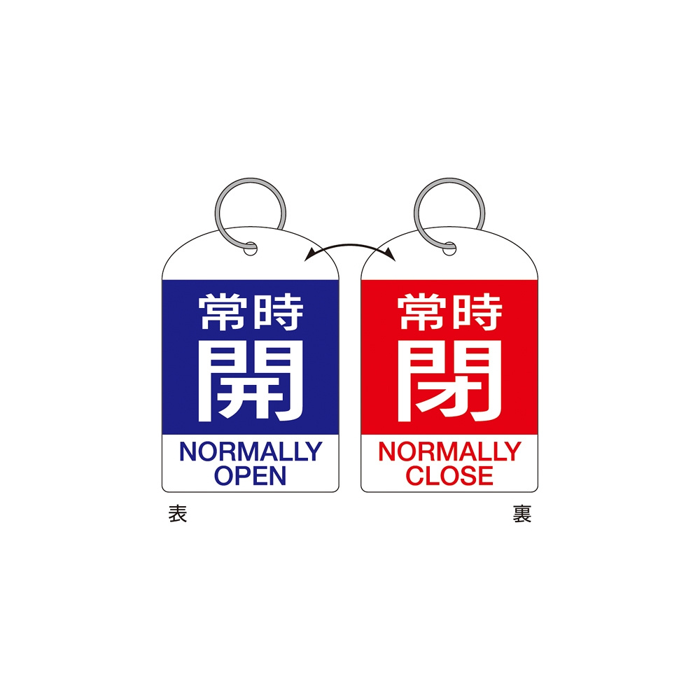 バルブ開閉札 60×40 2枚1組 両面印刷 表記:青常時開/赤常時閉 (162041)