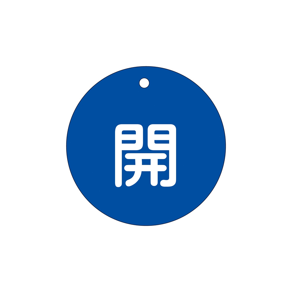 バルブ開閉札 80mm丸 両面印刷 表記:青開 (152013)