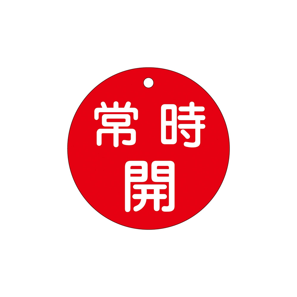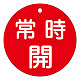 バルブ開閉札 80mm丸 両面印刷 表記:赤常時開 (152031)