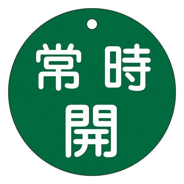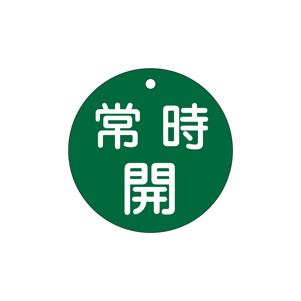 バルブ開閉札 80mm丸 両面印刷 表記:緑常時開 (152032)