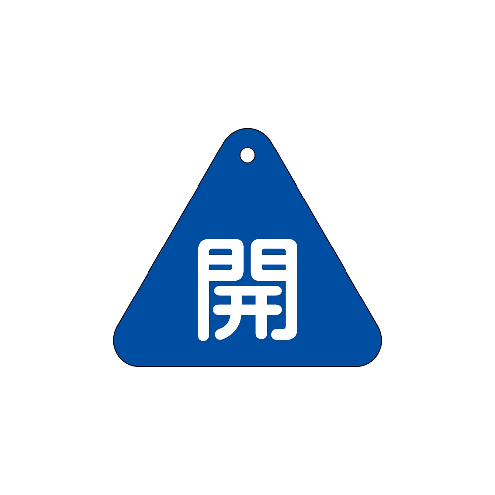 バルブ開閉札 60mm三角 両面印刷 表記:青開 (153013)