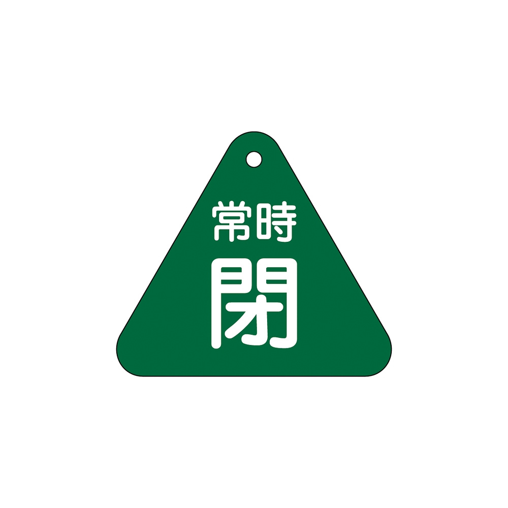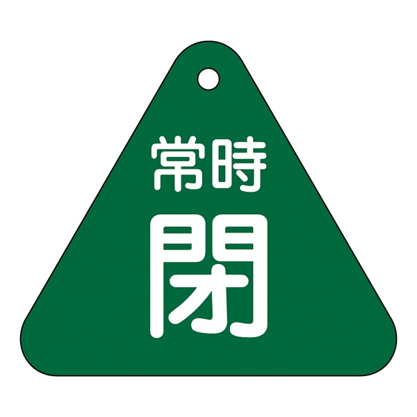 バルブ開閉札 60mm三角 両面印刷 表記:緑常時閉 (153042)