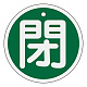 - アルミバルブ開閉札 50mm丸 両面印刷 表記:緑閉 (157022)