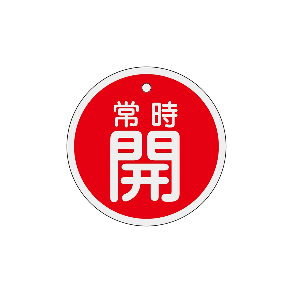- アルミバルブ開閉札 50mm丸 両面印刷 表記:赤常時開 (157031)