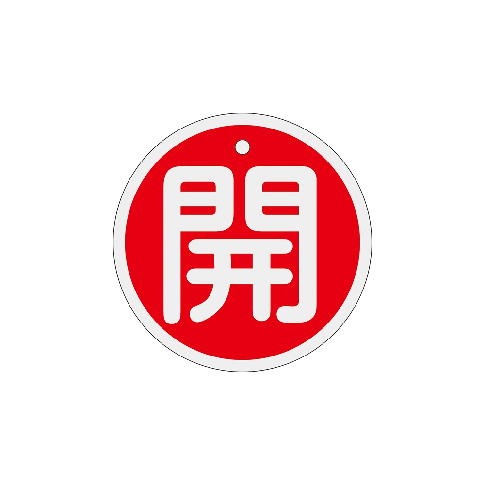 アルミバルブ開閉札 80mm丸 両面印刷 表記:赤開 (158011)