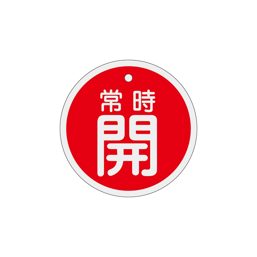 アルミバルブ開閉札 80mm丸 両面印刷 表記:赤常時開 (158031)
