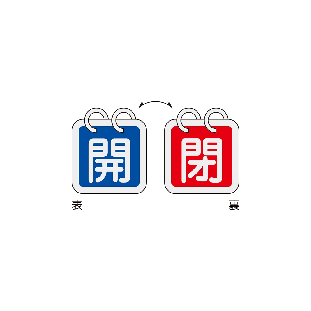 バルブ開閉札 40mm角 2枚1組 両面印刷 表記:青開/赤閉 (162021)