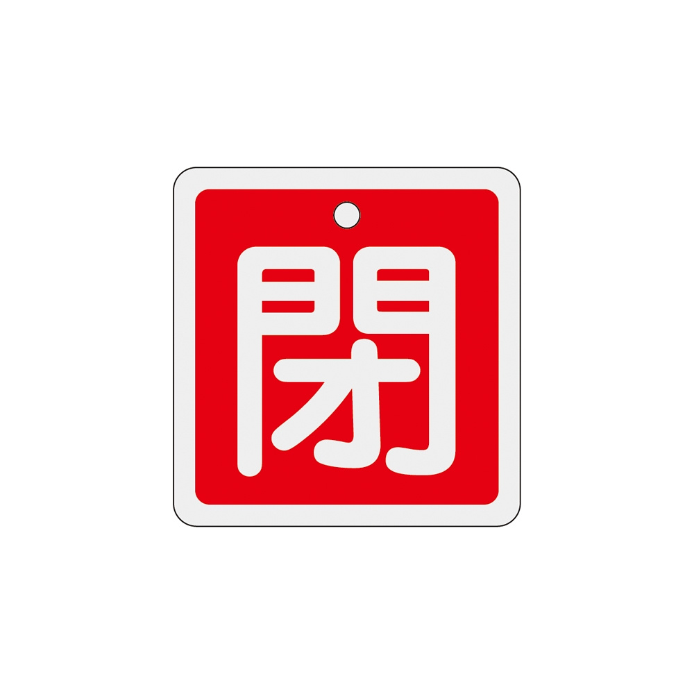 アルミバルブ開閉札 50mm角 両面印刷 表記:赤閉 (159021)