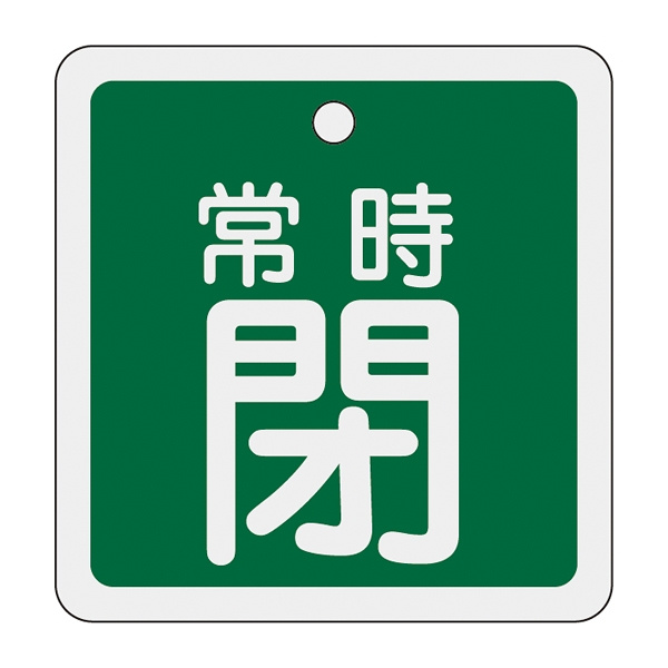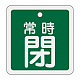 アルミバルブ開閉札 50mm角 両面印刷 表記:緑常時閉 (159042)