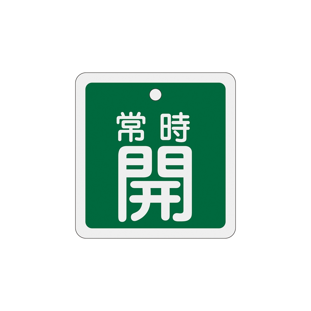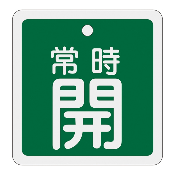アルミバルブ開閉札 80mm角 両面印刷 表記:緑常時開 (160032)
