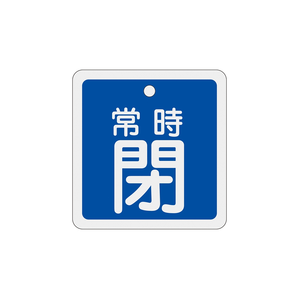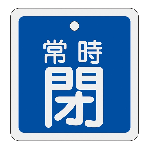 アルミバルブ開閉札 80mm角 両面印刷 表記:青常時閉 (160043)
