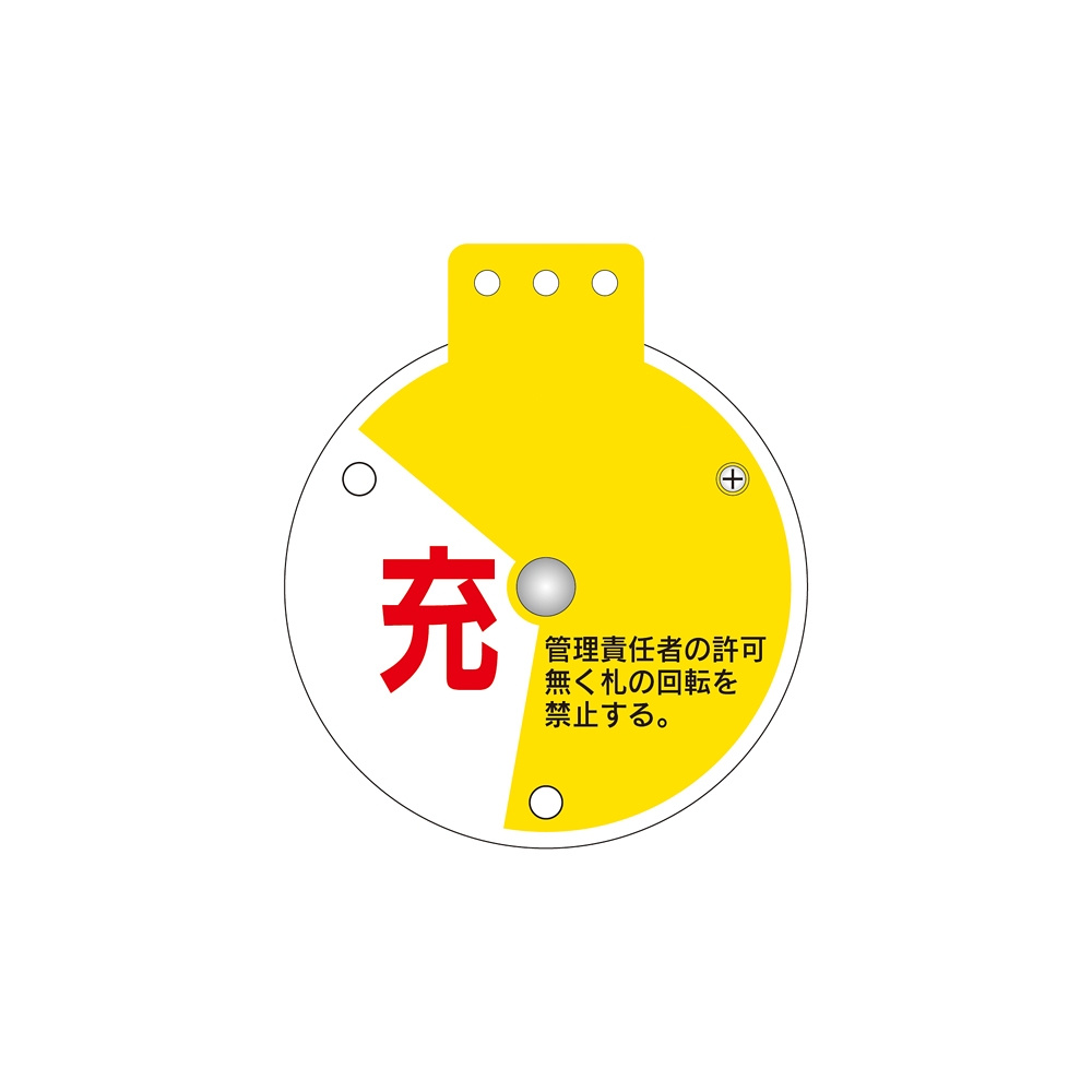 回転式バルブ開閉札 表記:充/充填中/空 (164084)