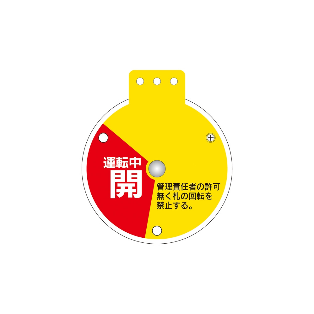 回転式バルブ開閉札 表記:運転中開/操作禁止/運転中閉 (164085)