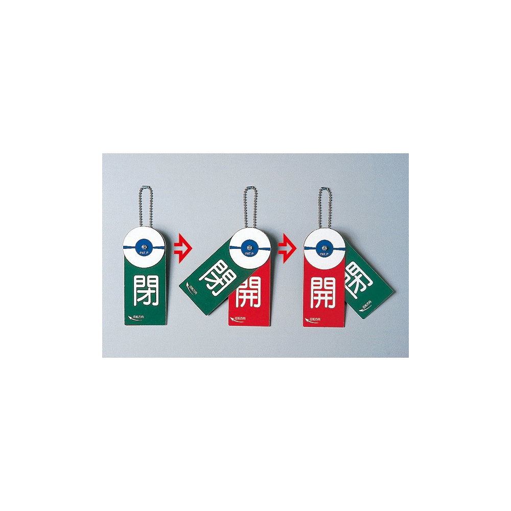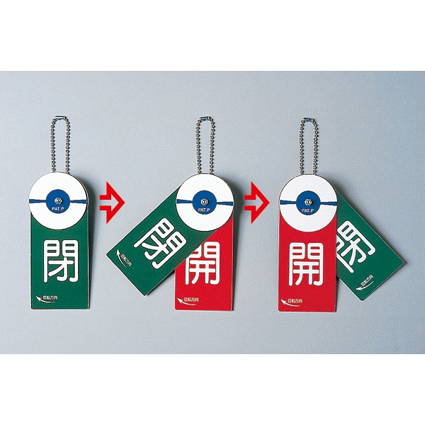 - まわせば勝手に入れ替わる、ねじ式開閉札。