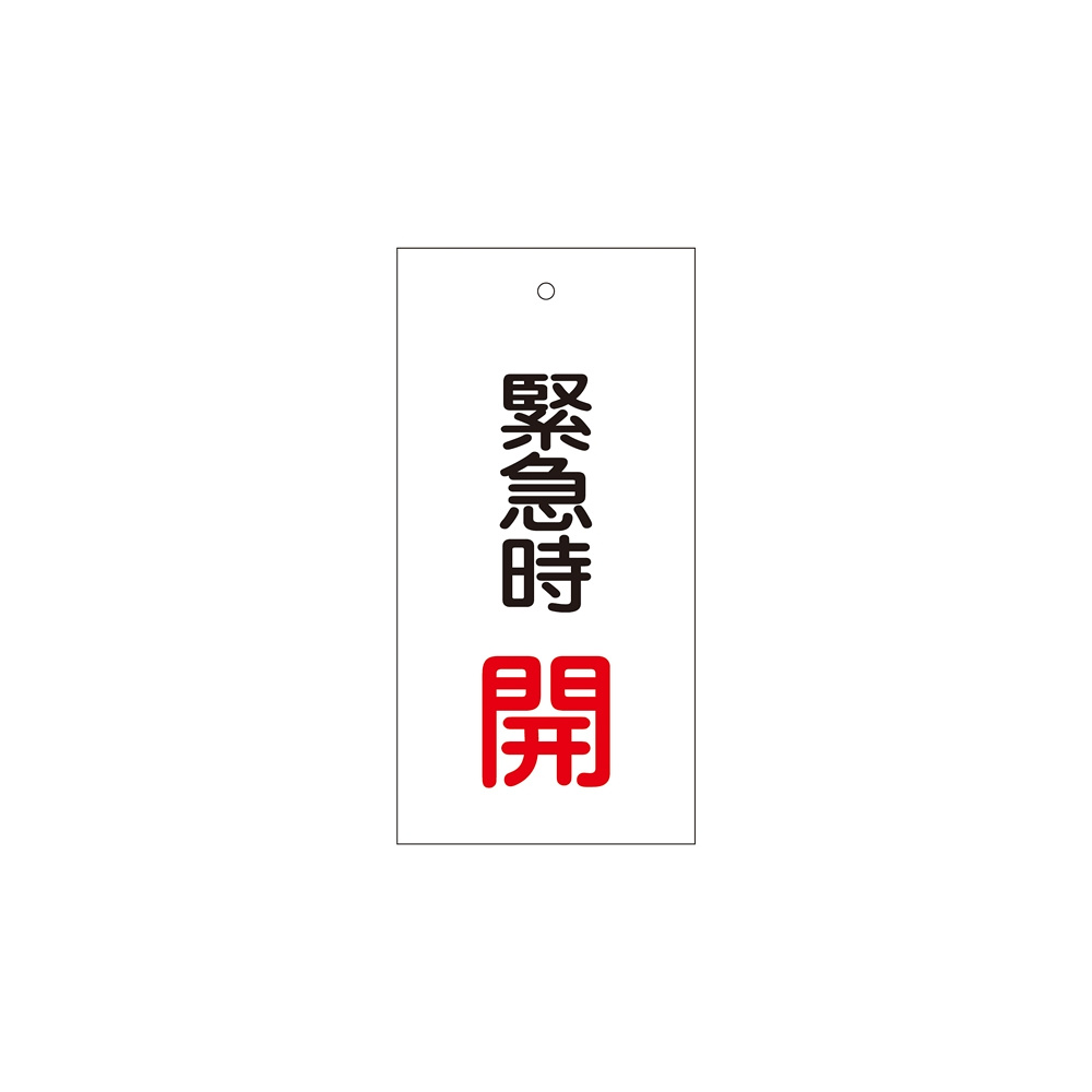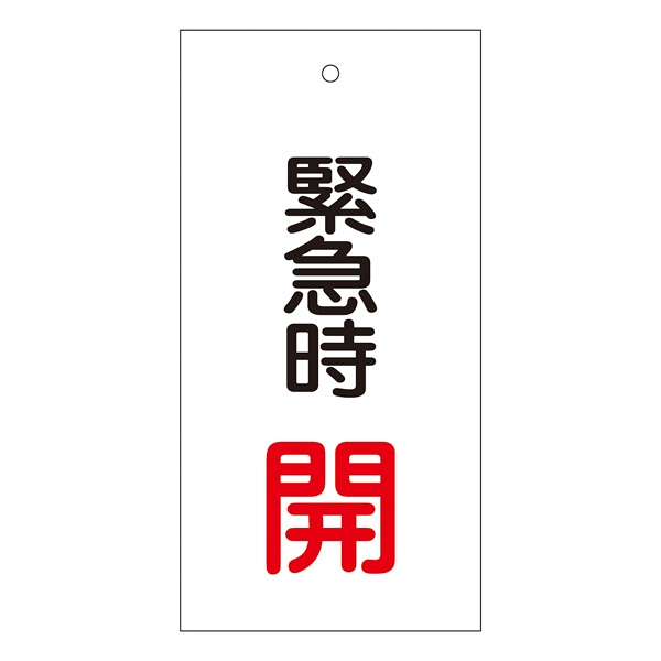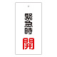 バルブ標示板 100×50 両面印刷 表記:緊急時 開 (166007)