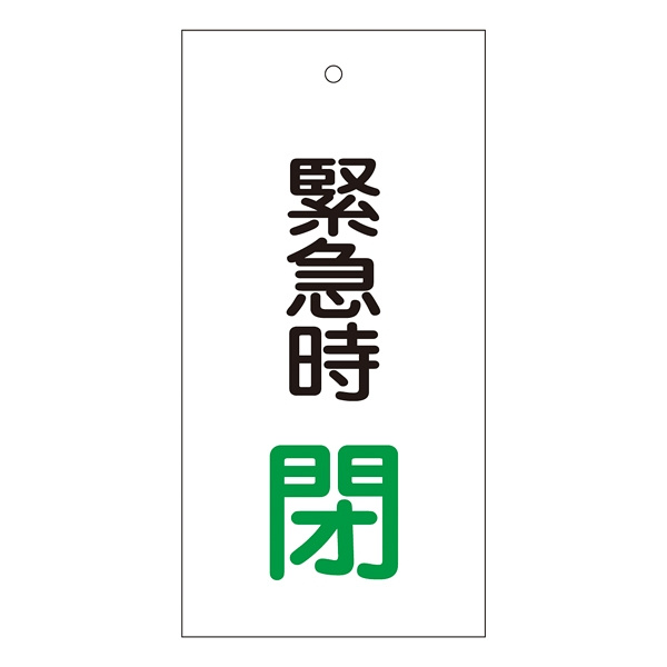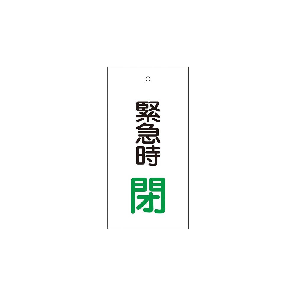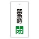 バルブ標示板 100×50 両面印刷 表記:緊急時 閉 (166008)