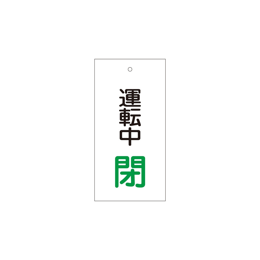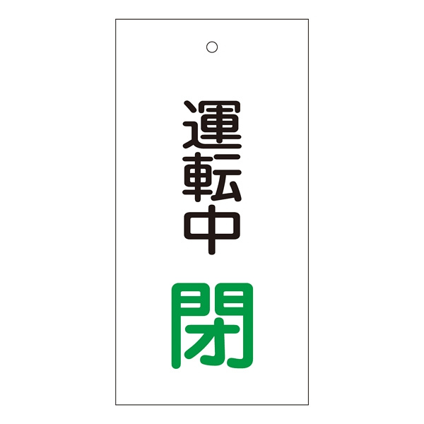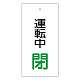 バルブ標示板 100×50 両面印刷 表記:運転中 閉 (166010)