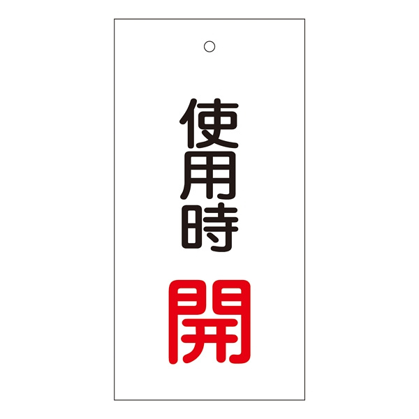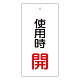 バルブ標示板 100×50 両面印刷 表記:使用時 開 (166011)