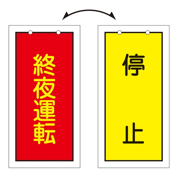 バルブ標示板 100×50 両面印刷 表記:終夜運転/停止 (166017)