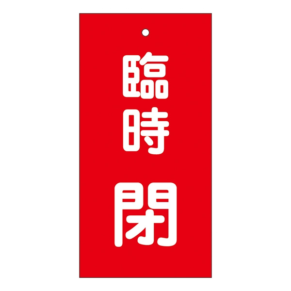 バルブ標示板 100×50 両面印刷 表記:臨時 閉 (166022)