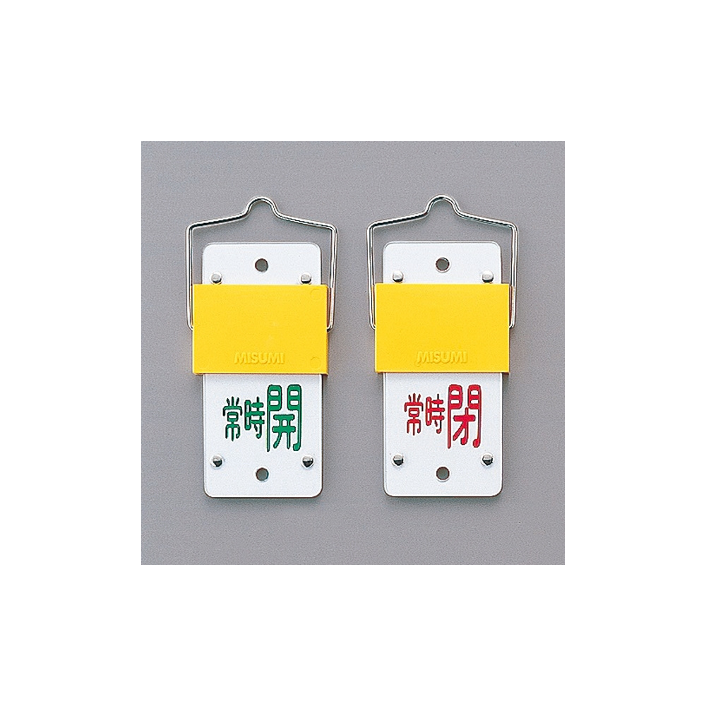 スライド式バルブ開閉札 (回転タイプ) 両面印刷 緑常時開/赤常時閉 サイズ: (大) 130×60 (165103)
