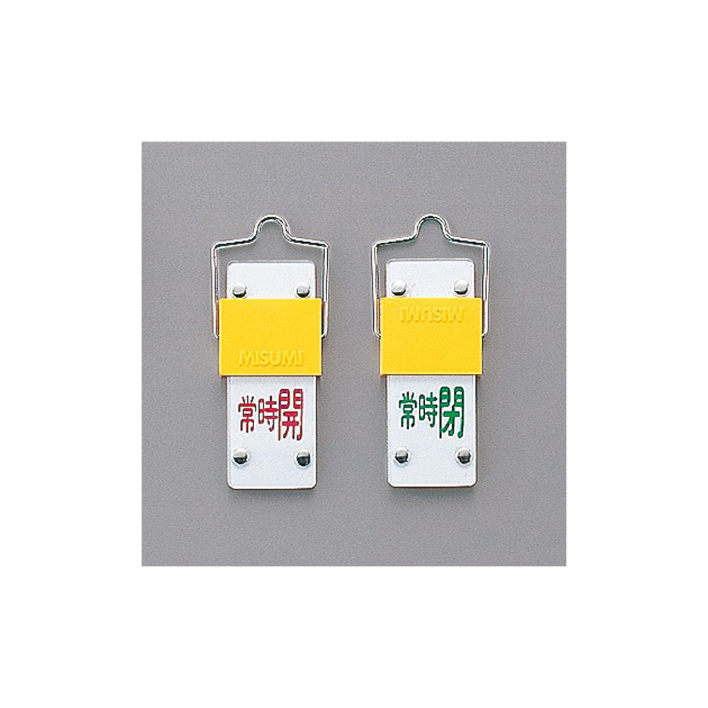 スライド式バルブ開閉札 (回転タイプ) 両面印刷 赤常時開/緑常時閉 サイズ: (中) 90×35 (165204)