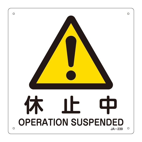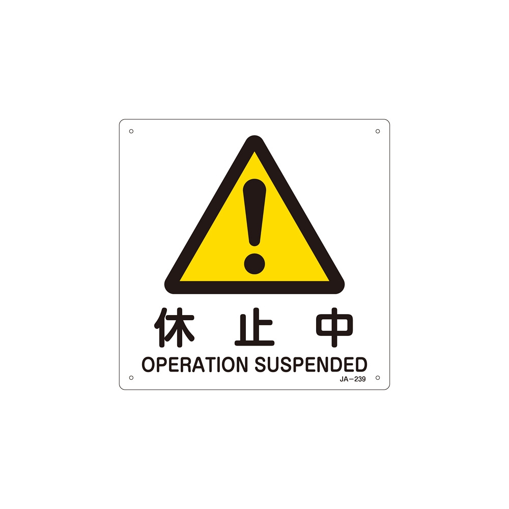 JIS安全標識 (警告) 225mm角 表記:休止中 (392239)