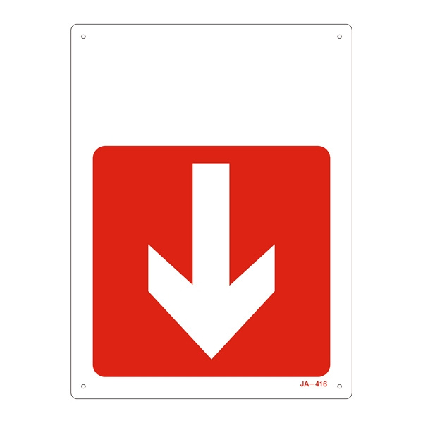 JIS安全標識 300×225 下矢印付 表記:赤地・ (下矢印) のみ (392416)
