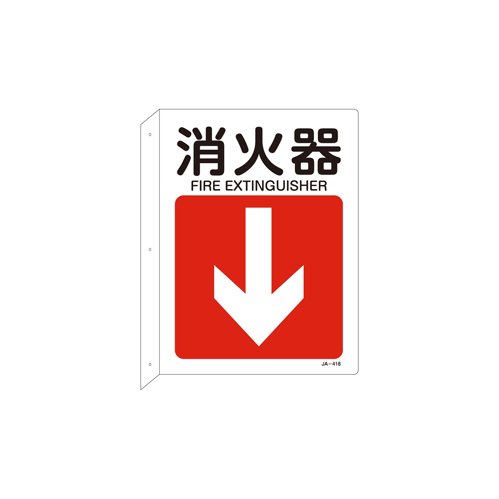JIS安全標識 L型表示板 300×225 下矢印付 両面印刷 表記:消火器 (392418)