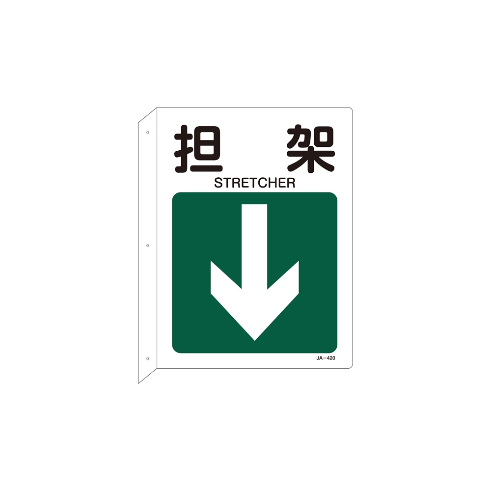 JIS安全標識 L型表示板 300×225 下矢印付 両面印刷 表記:担架 (392420)
