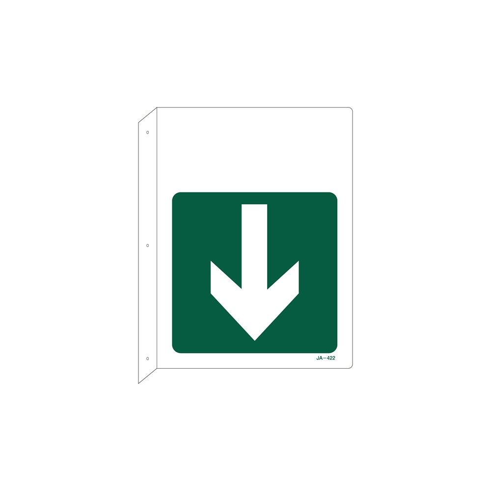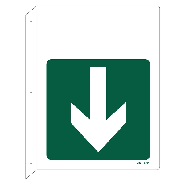 JIS安全標識 L型表示板 300×225 下矢印付 両面印刷 表記:緑地・ (下矢印) のみ (392422)
