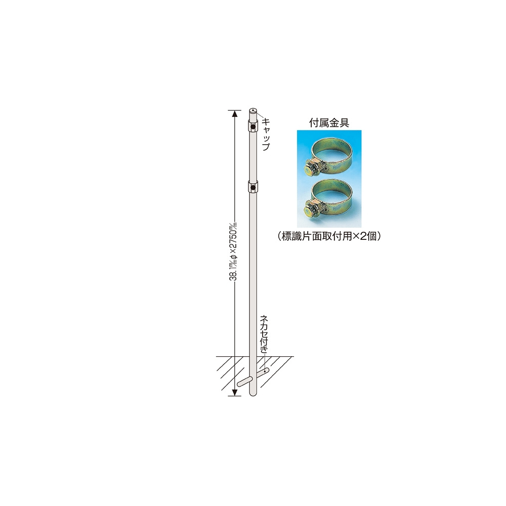 - 付属金具 (片面取付用金具(金具381)×2個) 道路標識・構内標識・消防水利標識等、各種標識板の取付にご使用ください。
