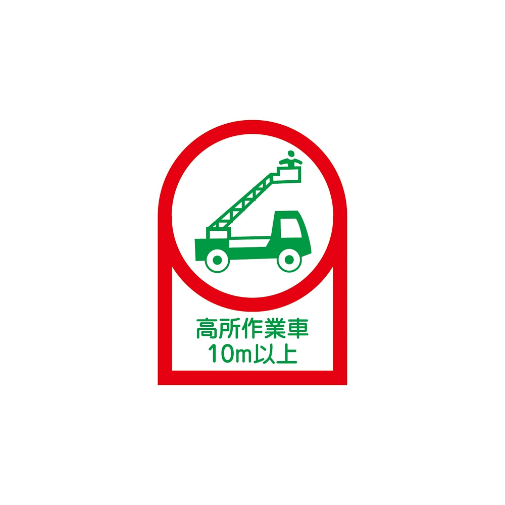 ヘルメット用ステッカー 35×25mm 10枚1組 表示:高所作業者10m以上 (233110)