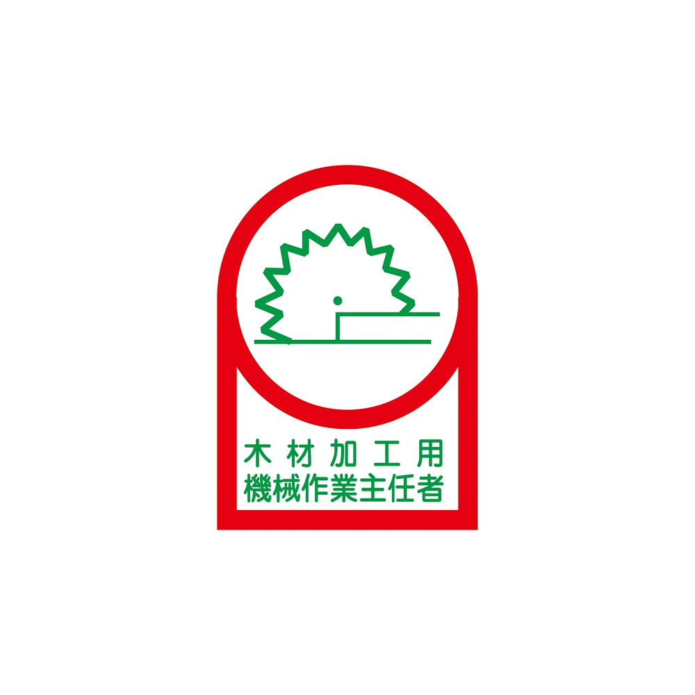 - ヘルメット用ステッカー 35×25mm 10枚1組 表示:木材加工用機械作業主任者 (233057)