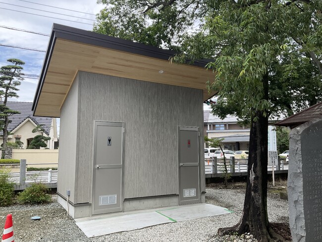 神社の新築トイレの仕上げに、ドアへ貼付けました。