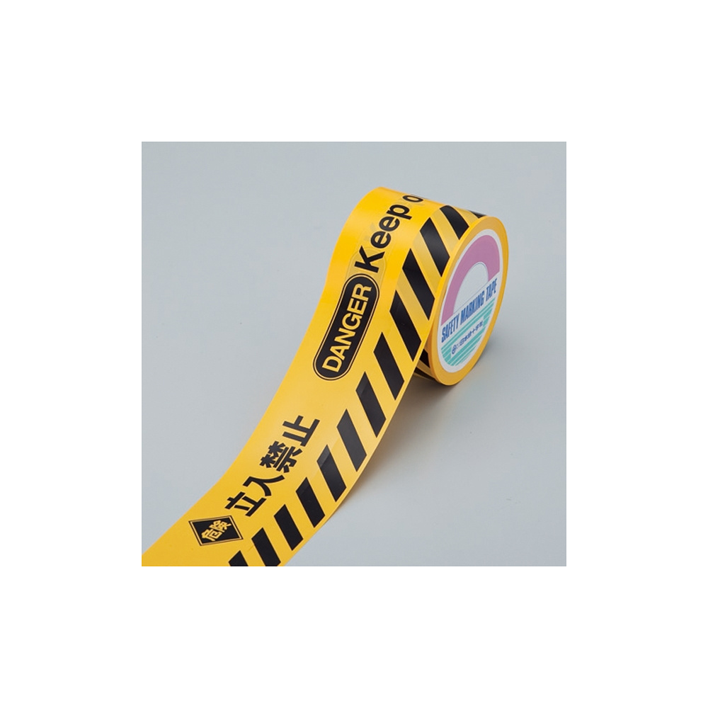 トラバリケードテープ 黄色地 80mm幅×50m 表記:立入禁止・菱形マーク付 (147008)