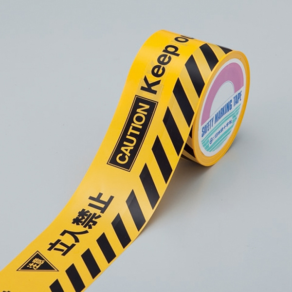 トラバリケードテープ 黄色地 80mm幅×50m 表記:立入禁止・三角マーク付 (147009)