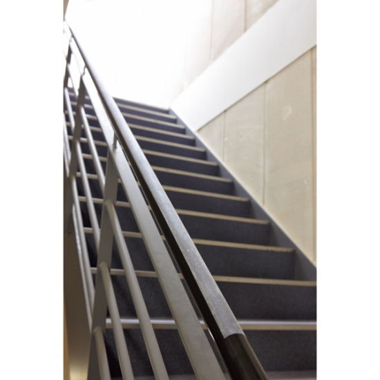 耐水、透明タイプの屋内用すべり止めテープ。特殊基材と高性能粘着剤でカットして貼るだけの簡単施工。