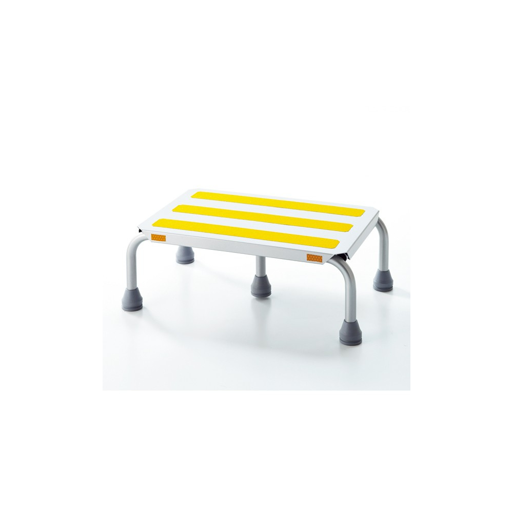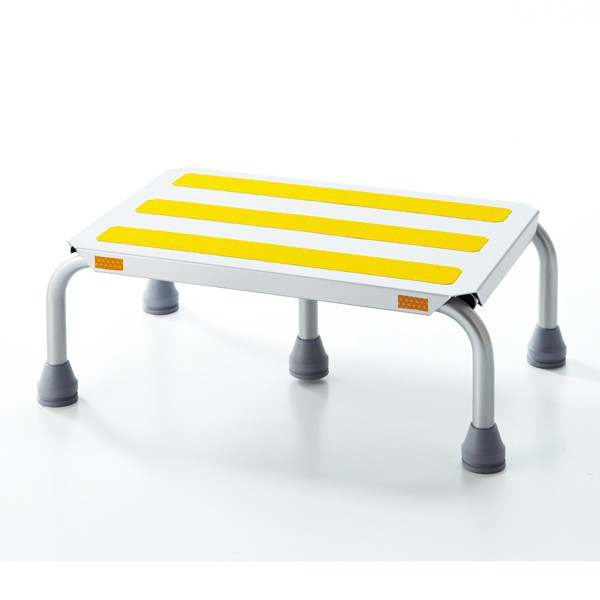 - 安定感の秘密は、ほんの少しだけ浮かせた5本目の足!踏み込んだ時の荷重を活かし、グリップ力を高める為に浮かせています。真ん中にあるので、足を引っ掛ける心配もありません。天板には、すべり止めシートと反射シートが付いています。